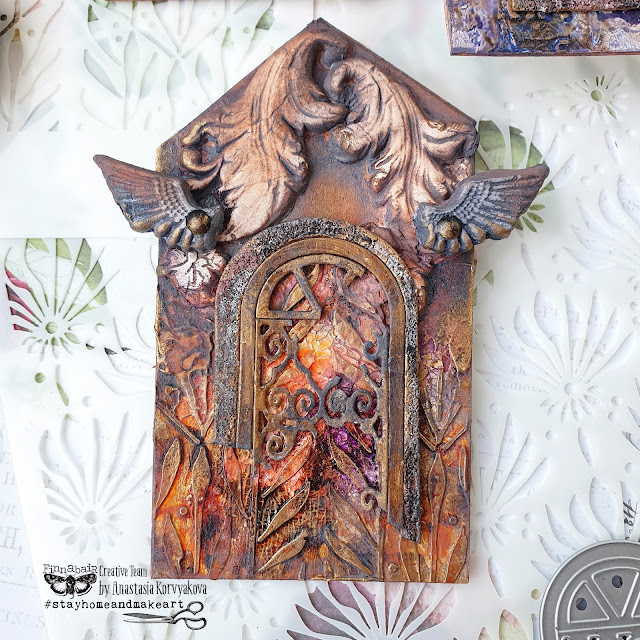 Использовала множество материалов Finnabair Studio - молды, текстурные пасты, акриловые краски и воски, в том числе потрясающие новые.